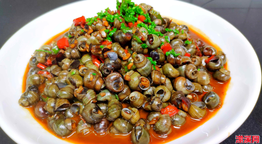 3、在炒好田螺时,不要马上盛出,因为锅中有汤汁,可以多泡一会,让田螺更入味。