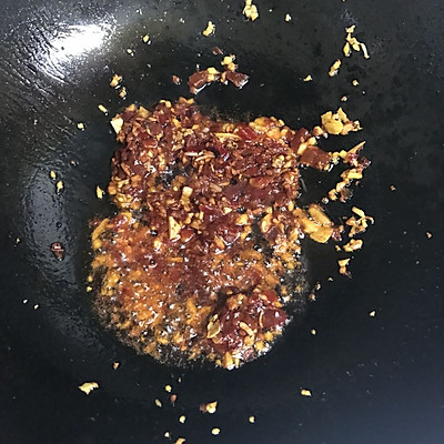 3、锅内留底油,放入葱花姜片、蒜片、小红干辣椒呛锅!!依次放入豆辨酱、番茄酱、煸熟煸香!放入醋、白糖、少量的水!再放入少量盐、味精、鸡粉!