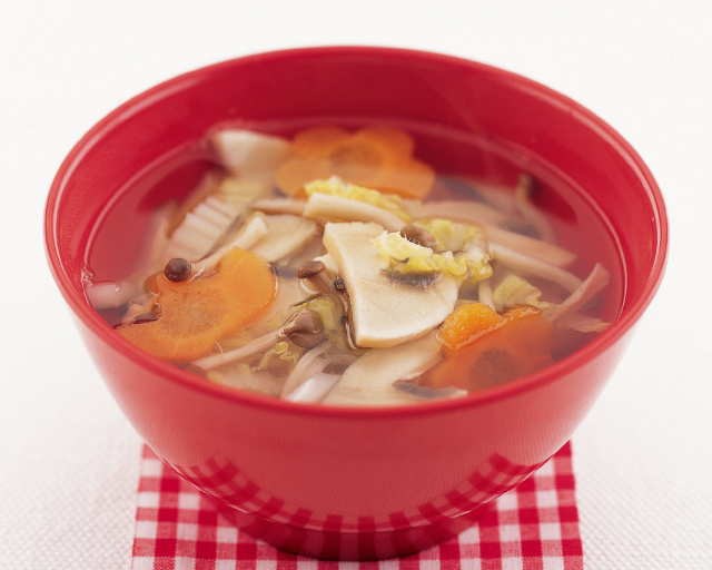1将香菇金针菇平菇鲍鱼菇用清水洗净,切成适当的大小2将素鸡块用清水焯水去腥,备用3烧一锅清水,加入姜片煮沸4加入洗净的菇类和素鸡块,煮10分钟5加入适量的盐调味,撒上葱花即可2 素青菜汤材料油菜四季豆蘑菇胡萝卜豆腐姜片清水盐做法1将油;1胡萝卜与马铃薯削去外皮后切片,洗净高丽菜一片片剥开,并且将每一片先剥成三块后,切大段状白花椰菜洗净,去硬梗小红蕃茄对半切备用2将作法1的所有材料姜片蕃茄酱月桂叶盐糖酱油与2杯热开水一起放入快锅中,盖上锅盖,以大火煮至汽笛声响,转小火续煮约3分钟即熄火。
