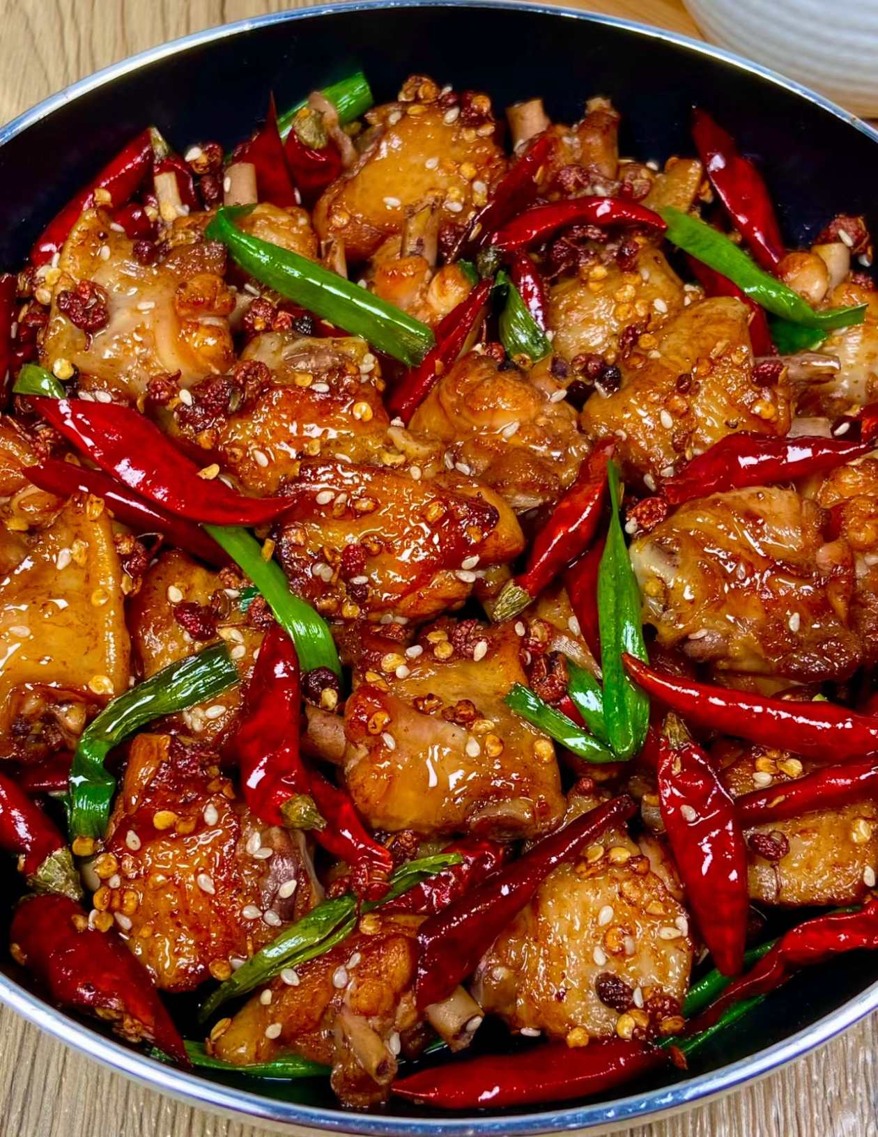 辣子鸡的做法1 准备食材鸡腿肉花椒干辣椒葱姜蒜2 将鸡腿肉切成小块,加入盐料酒淀粉拌匀腌制10分钟3 将花椒干辣椒用油炸至微黄色,捞出备用4 锅中加入适量油,放入葱姜蒜爆香,加入腌制好的鸡肉煸炒至变色5 加入炸好的花椒干辣椒,继续煸炒6 最后加入。