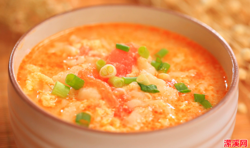 12. 营养丰富的西红柿芹菜叶香菇猪肉疙瘩汤装入容器中就大功告成了。