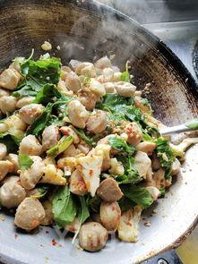 3、步骤: 准备材料:将韭菜洗净切碎,豆腐切成小块,香菇泡软后切碎。 爆香调料:锅中倒入适量油,放入姜末和葱末进行爆香。 翻炒馅料:加入豆腐和香菇进行翻炒,随后加入韭菜继续翻炒至均匀。 调味:加入盐、鸡精、生抽、料酒和花椒粉进行调味,翻炒均匀,使馅料充分吸收调料的味道。