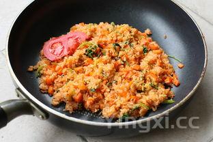 2、西红柿炒饭的做法如下:食材 西红柿 1个米饭 300g鸡蛋 1个盐 5g洋葱 30g非转基因食用油 30g方法/步骤 鸡蛋与米饭搅拌将煮熟后晾凉的米饭打入一个鸡蛋,戴上手套充分搅拌,确保鸡蛋均匀包裹每一粒米饭。炒洋葱丁热锅冷油润锅后,倒入食用油烧至五成油温,下入切好的洋葱丁,翻炒至散发出葱香味。